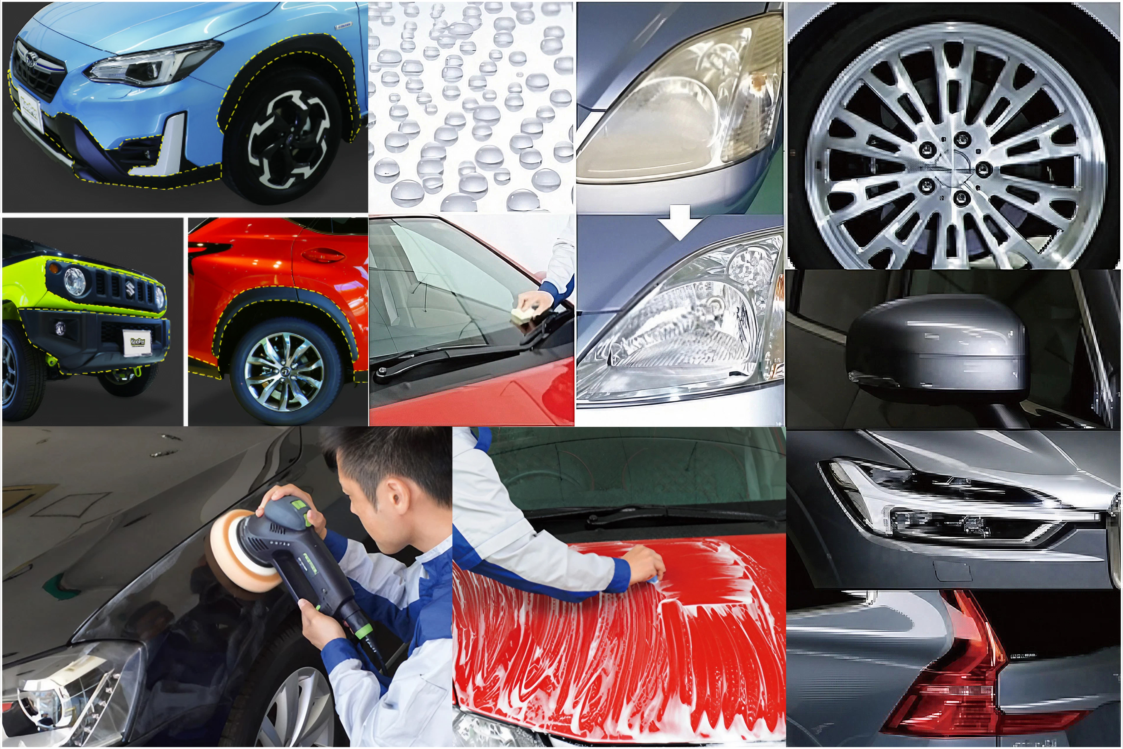 | 施工箇所 | ①窓ガラス全面 ②アルミホイール4本 ③ヘッドライト ④テールレンズ ⑤サイドバイザー(ある場合) ⑥ドア内側のステップ部分 ⑦ボンネット裏側 ⑧トランクの裏側 ⑨給油口の内側 ⑩エンジンルームの中 ⑪除菌車内清掃 |
